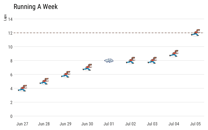 不知不觉间,我已经跑步一周多了,但用「坚持」二字恐怕还为时尚早。从一开始只能跑四圈,每天慢慢增加一点,现在终于达到了自己的目标,可以一口气跑十二圈了,尽管速度不是很快。