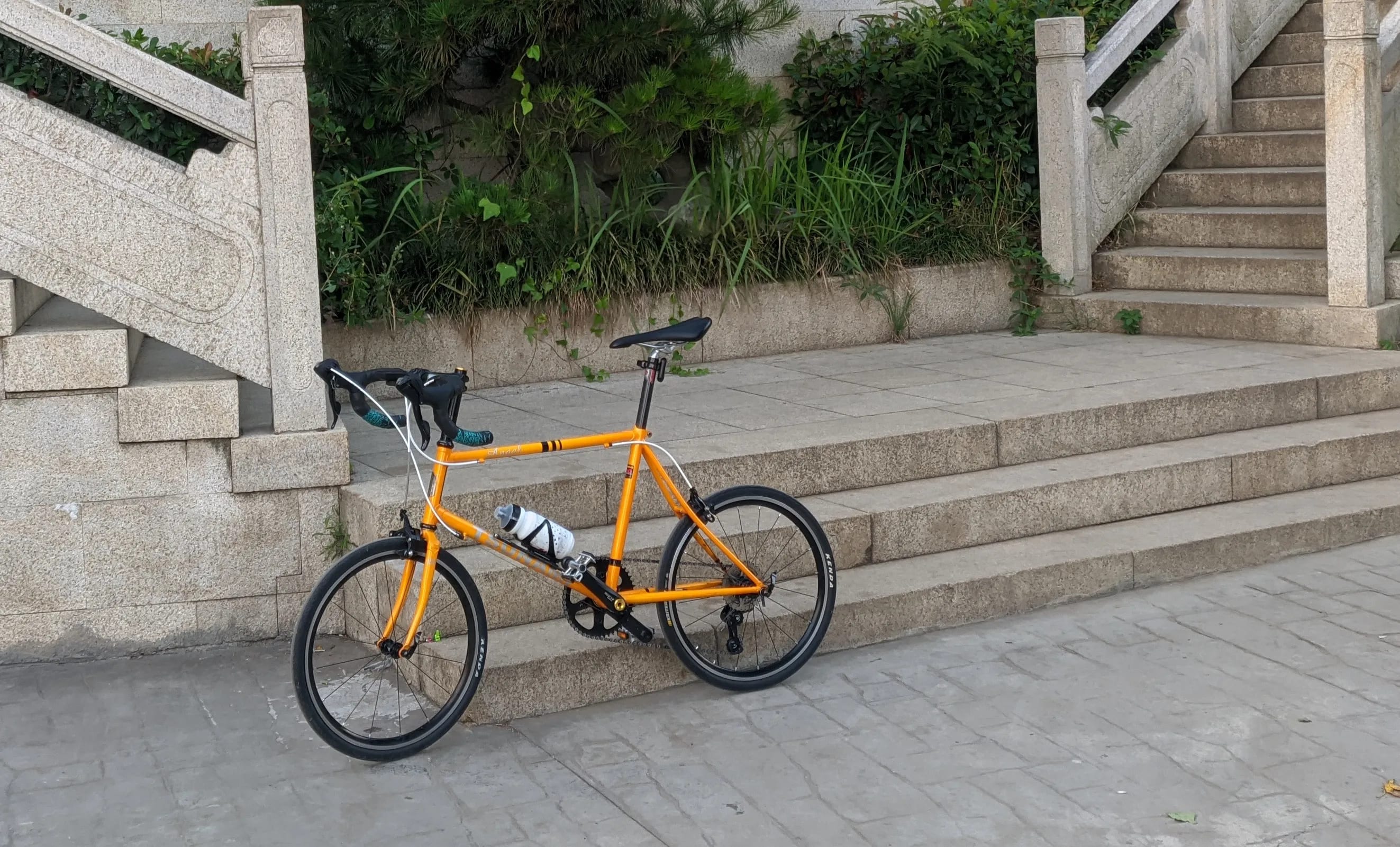 我是不太懂自行车零件的,既然前车主详细地列了出来,大概品质还不错。事实上车的性能挺好,骑起来很轻松,虽然速度没有大轮的公路车快。由于车架是钢的,重量也比我的公路车要重一点,按前车主的说法是 9 公斤。有了新车,自然是要优先体验,除了骑着上班,周末也用它去爬坡。